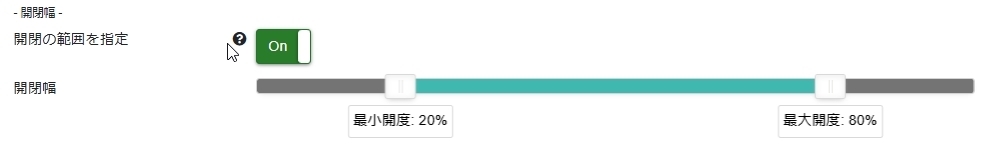 窓の制御において、最大開度と最小開度を設定できるようにしました。設定は0~100%で指定します。この設定をすると、窓は最大開度以上には開かず、最小開度以下には閉じなくなります。